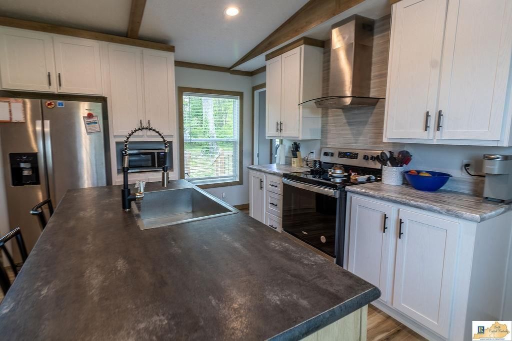 Welcome to this beautiful 2024 manufactured home offering modern comfort and quality construction! Built with 2x6 exterior walls for enhanced insulation and energy efficiency, this home features finished drywall throughout, giving it a true residential feel. The exterior is topped with durable architectural shingles, and the home is set on a permanent block foundation for added stability and peace of mind. Enjoy the best of both worlds?peaceful country living with the convenience of being just a short drive to town. Whether youre looking for your first home or a quiet place to settle down, this one checks all the boxes!